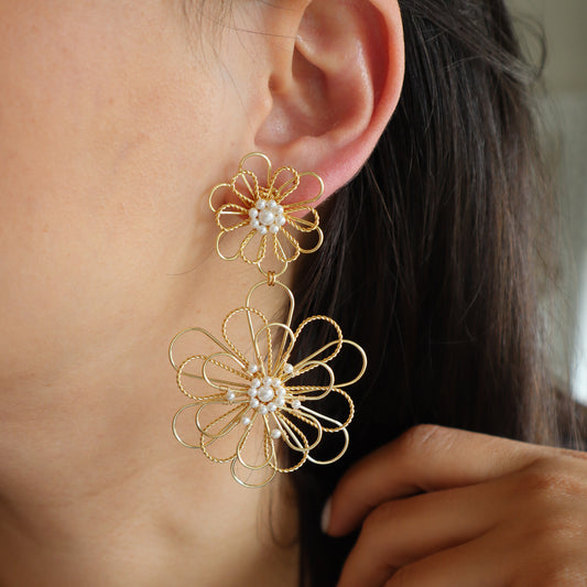 Aretes Tejidos Floreados Dobles