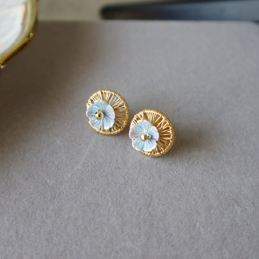 Aros boton Floreado dorado