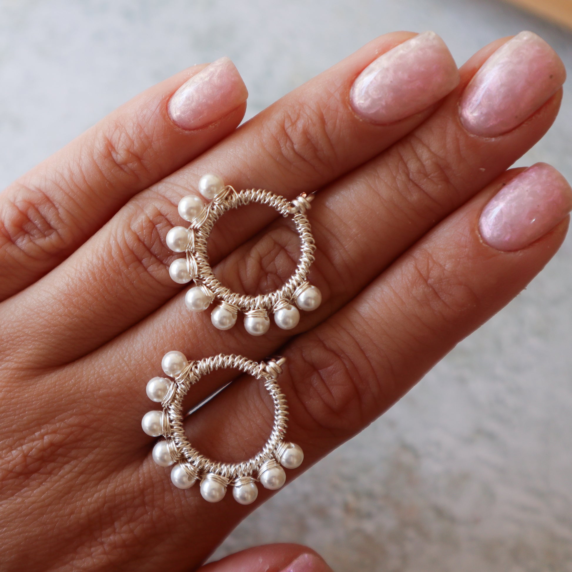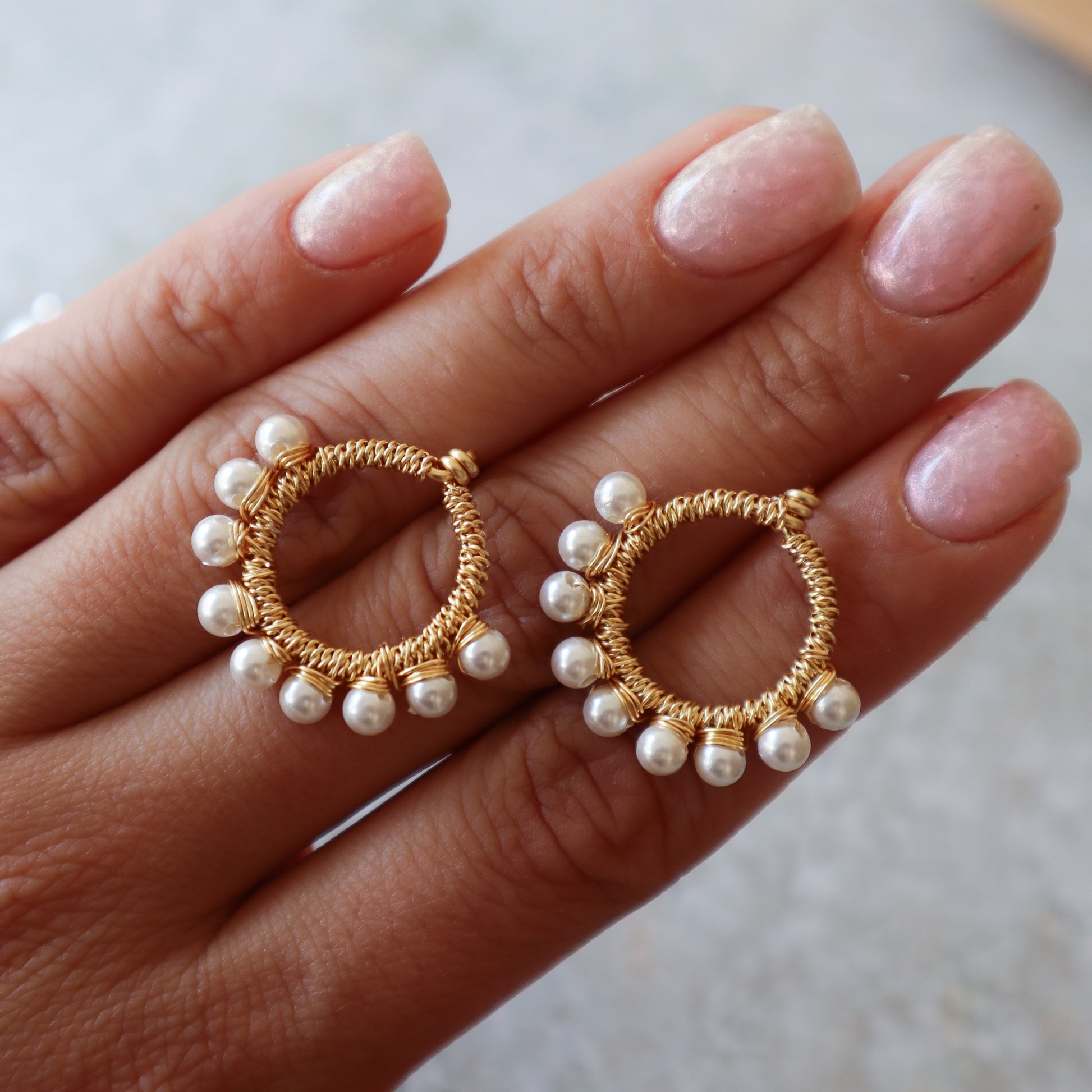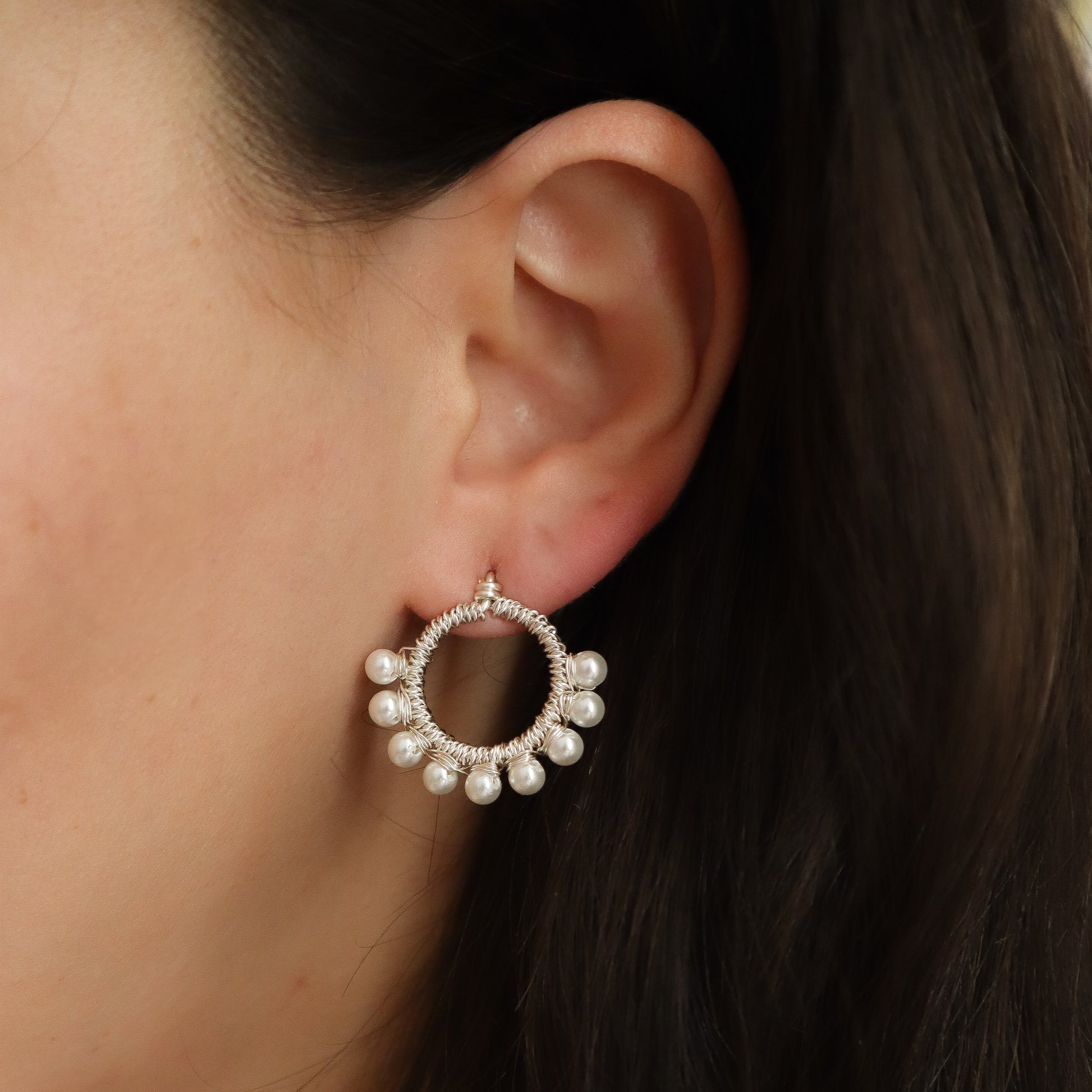 Divinos aros con diseño de autor, elaborados a mano con perlas cultivadas.
