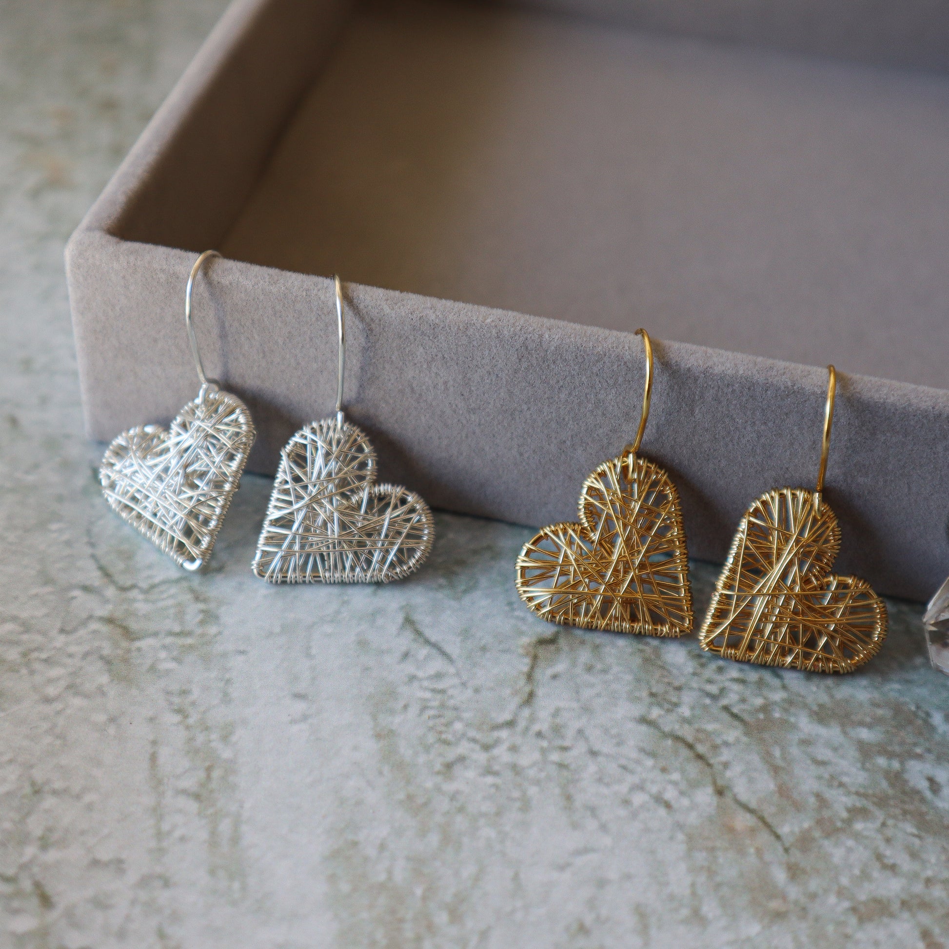 Versatiles aros con diseño de corazon, elaborado a mano.