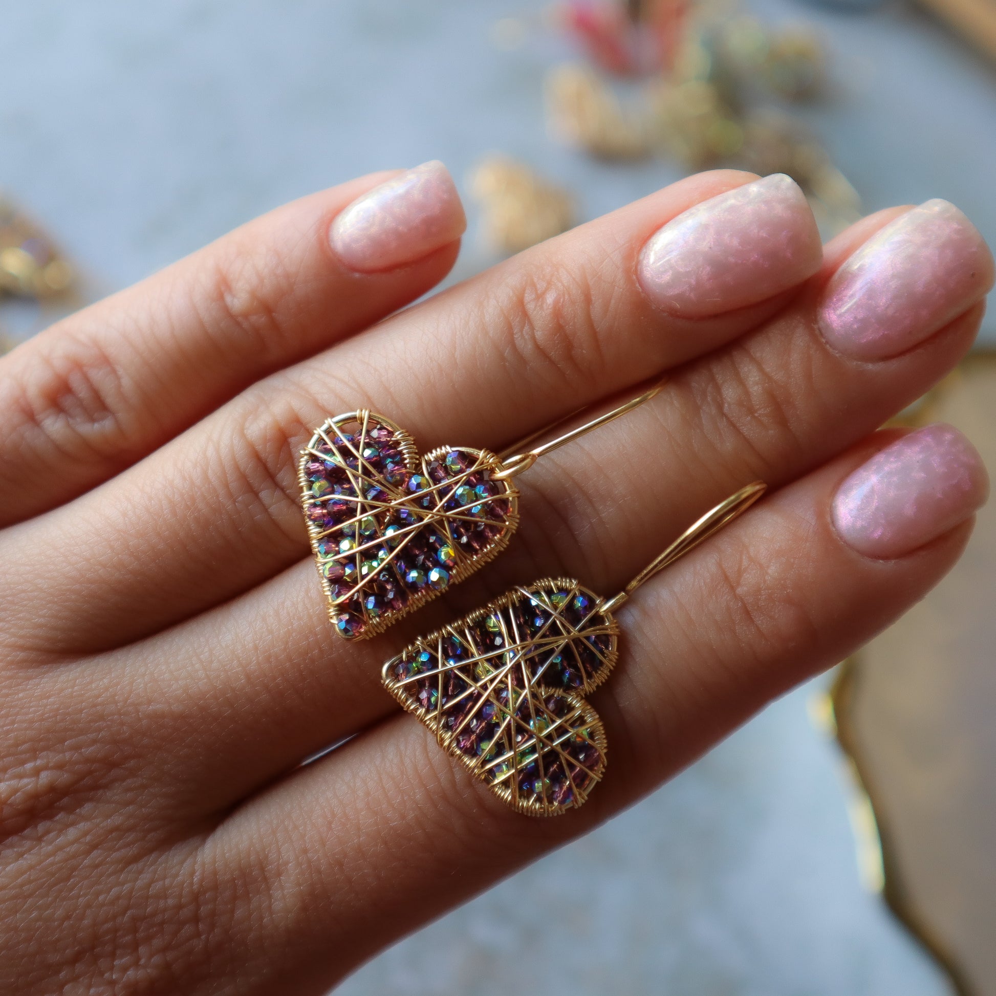 Elaborados a mano con tecnica de alambrismoy incrustacion de cristales checo.