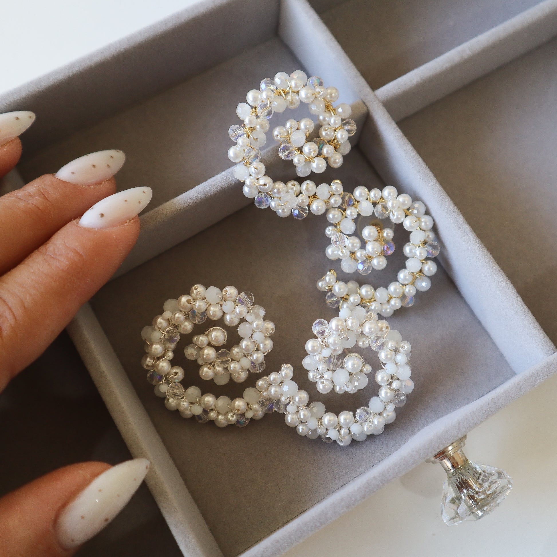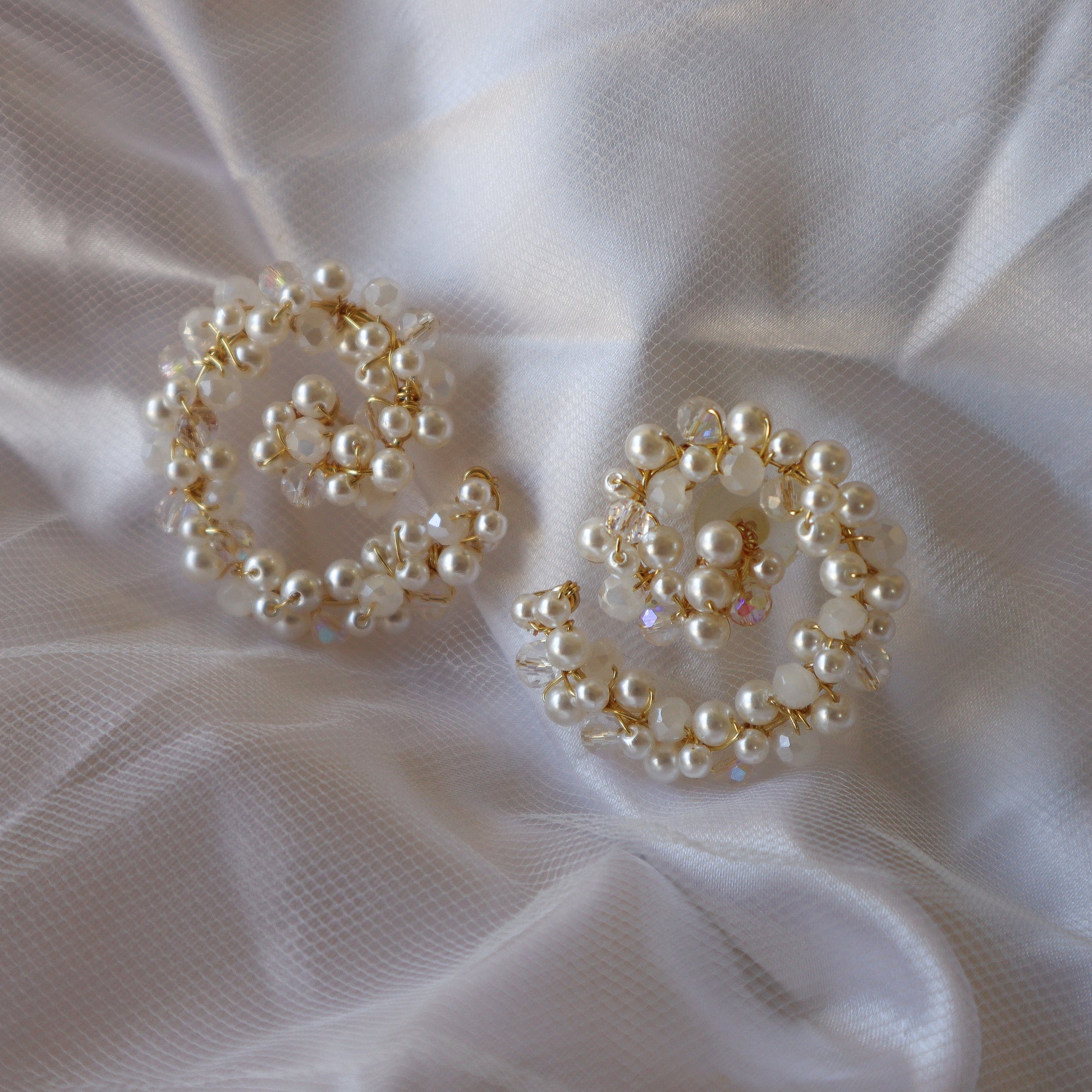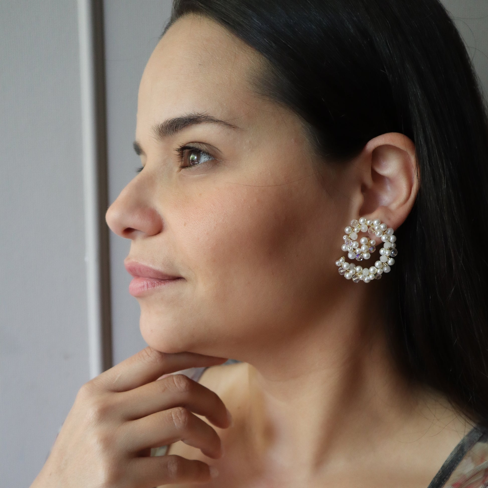 Elaborados a mano en nuestro taller, con materiales nobles como perlas tipo shell, cristales y piezas con baño en oro.