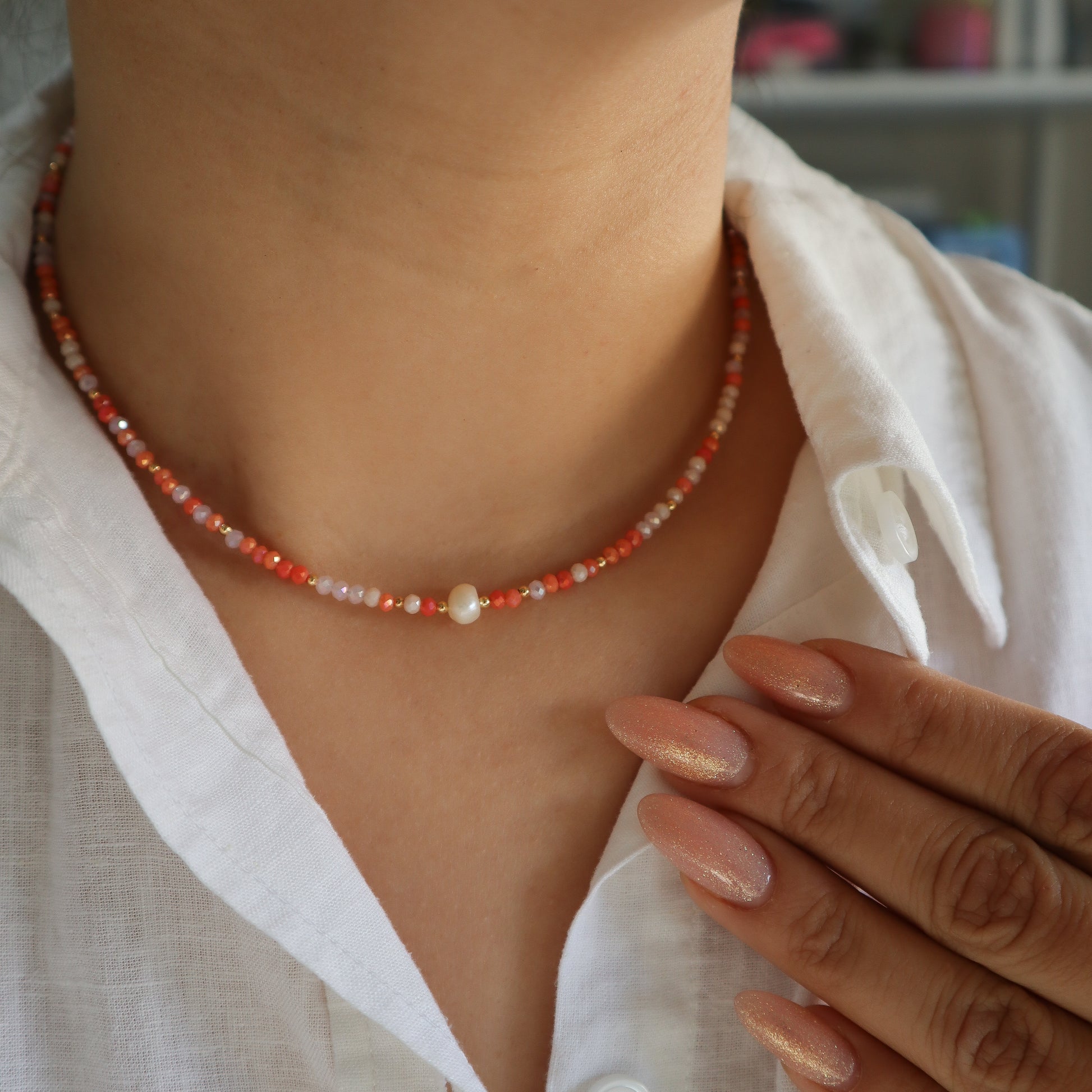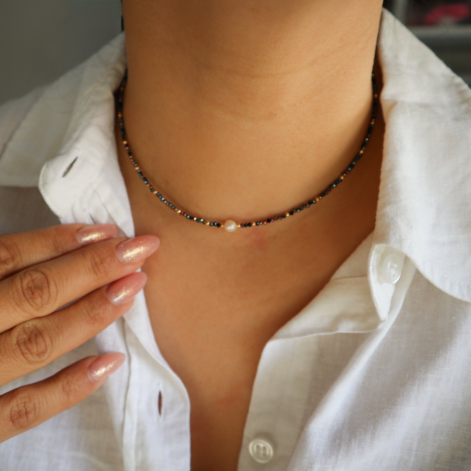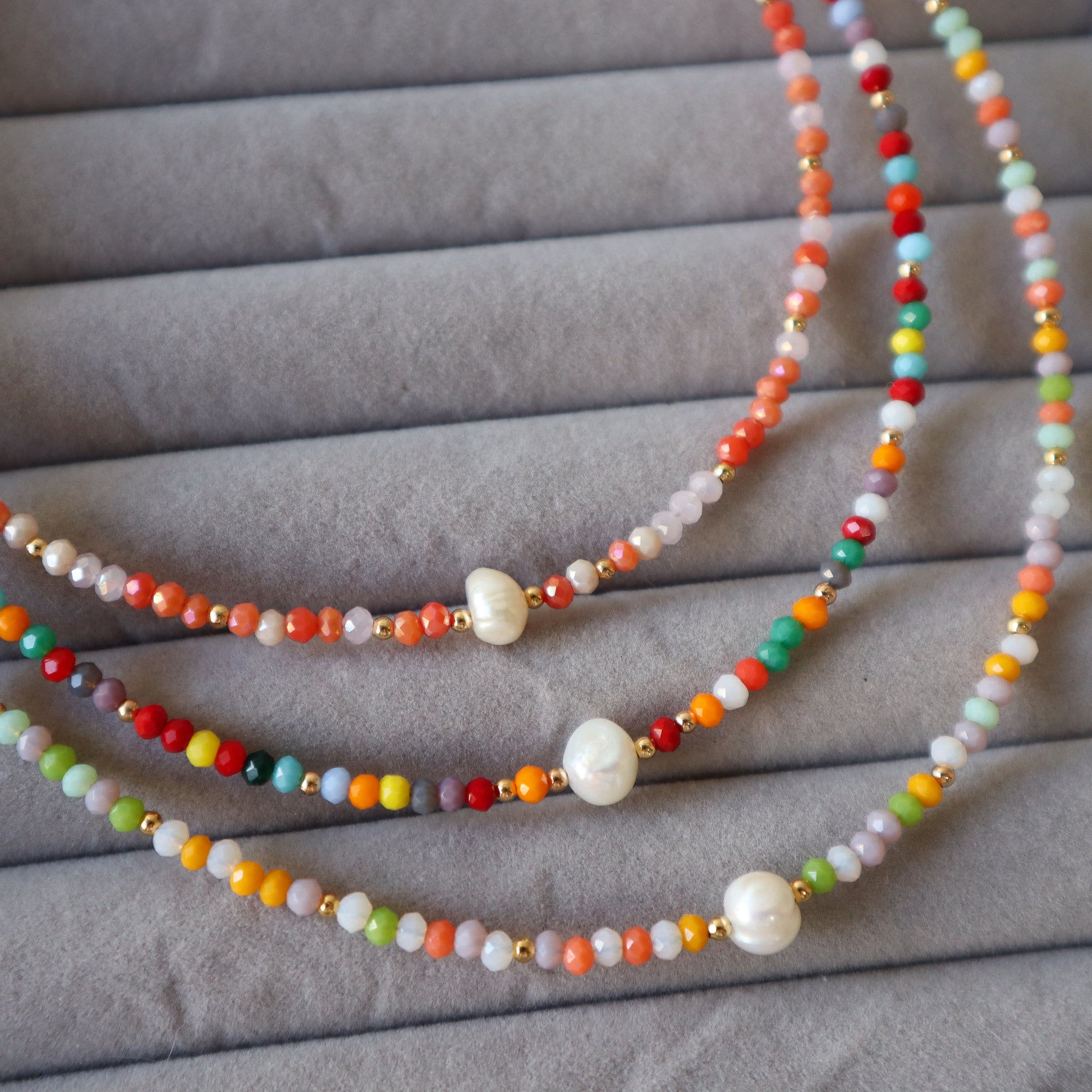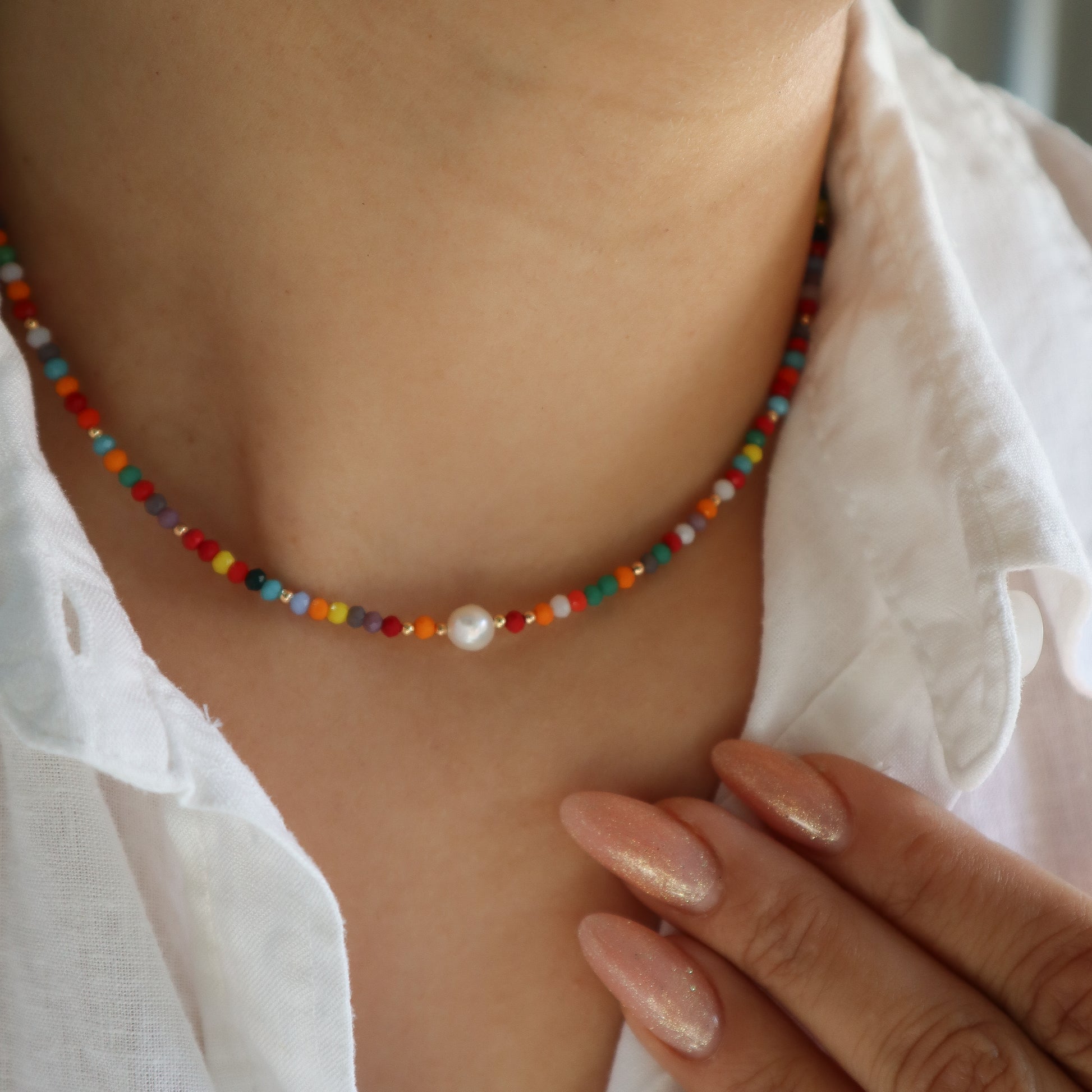 Chokers de diseño exclusico, con cristales chekos y perlas cultivadas.